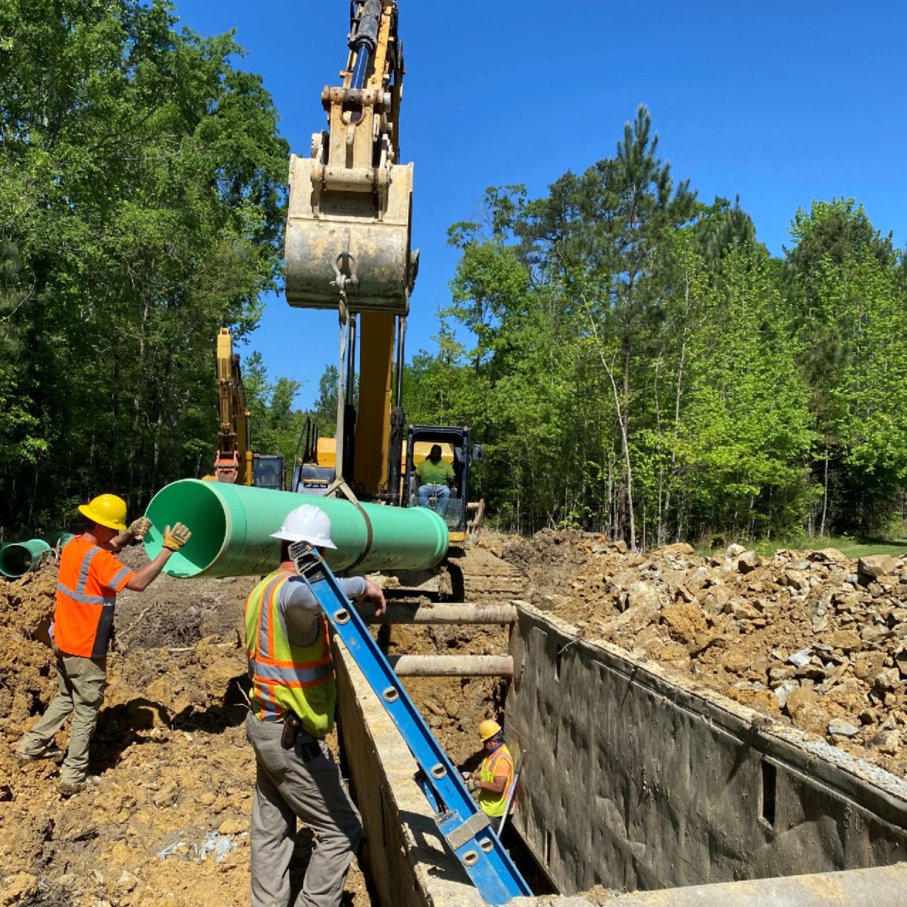 Phase I included 14,785LF of 42” steel raw water pipe going from Lake Tilery to the South Side of Norwood..……..